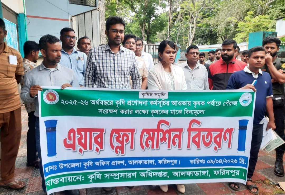 পেঁয়াজ সংরক্ষণে আলফাডাঙ্গায় কৃষকদের মাঝে ‘এয়ার ফ্লো মেশিন’ বিতরণ