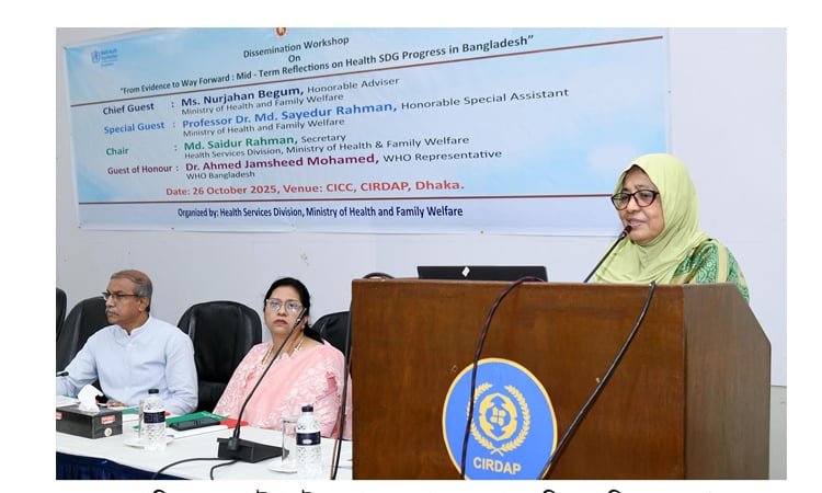 স্বাস্থ্য ও পরিবার কল্যাণ মন্ত্রণালয়ের উপদেষ্টা  নূরজাহান বেগম বলেছেন, ২০৩০ মধ্যে টেকসই উন্নয়ন লক্ষ্যমাত্রা (এসডিজি) অর্জনে কিছু ক্ষেত্রে অগ্রগতি উৎসাহব্যঞ্জক, আর কিছু ক্ষেত্রে স্থিত পর্যায়ে রয়েছে।