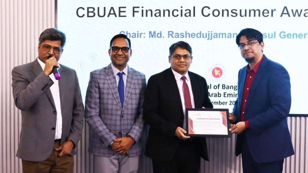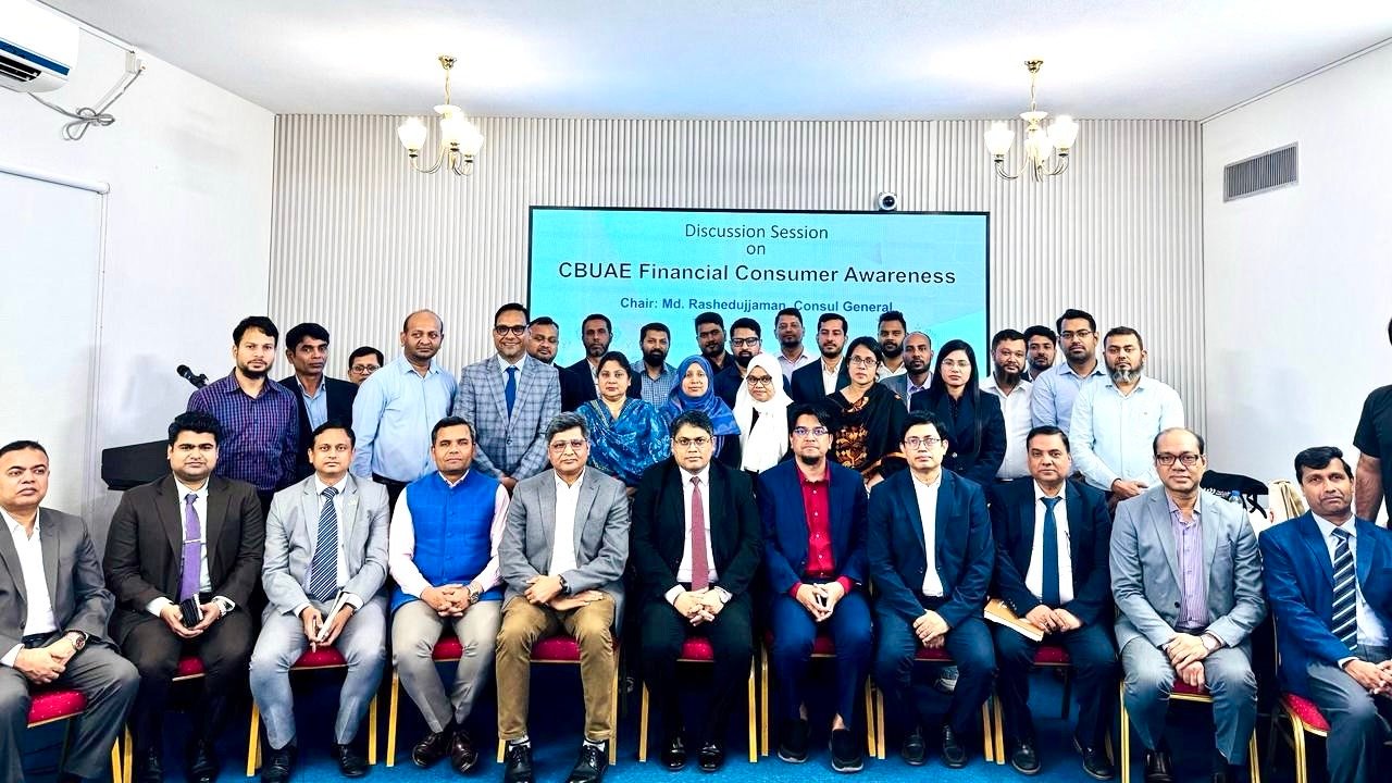 দুবাইয়ে বাংলাদেশ কনস্যুলেট জেনারেলে ইউএই সেন্ট্রাল ব্যাংকের ফাইন্যান্সিয়াল লিটারেসি বিষয়ে সচেতনতা বৃদ্ধিমূলক একটি প্রশিক্ষণ সেশন সফলভাবে সম্পন্ন হয়েছে। কনসাল জেনারেল মোঃ রাশেদুজ্জামানের সভাপতিত্বে অনুষ্ঠিত এ প্রোগ্রামটি পরিচালনা করেন কমার্শিয়াল কাউন্সেলর আশীষ কুমার সরকার।