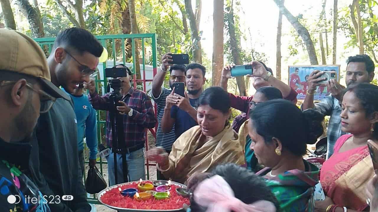 গাড়ি থেকে নামার সঙ্গে সঙ্গে শমিতকে ফুলেল শুভেচ্ছায় বরণ করে নেন তাঁর পরিবারের সদস্য, আত্মীয়স্বজন এবং এলাকার ফুটবলপ্রেমীরা। মুহূর্তেই চারপাশে তৈরী হয় এক আনন্দঘন উৎসবমুখর পরিবেশ।